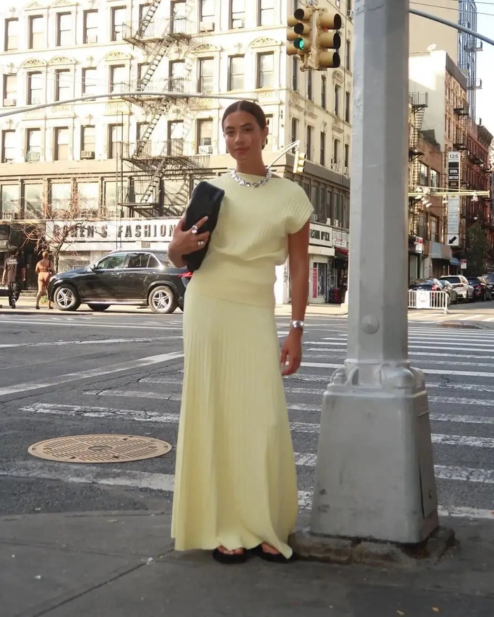其次,帕斯蒂尔风最核心还是颜色,当你不知道怎么穿流行色,one piece 连身裙是最小概率犯错的选择,今年海外博主、明星穿过这种颜色的连衣裙可太多太多了!