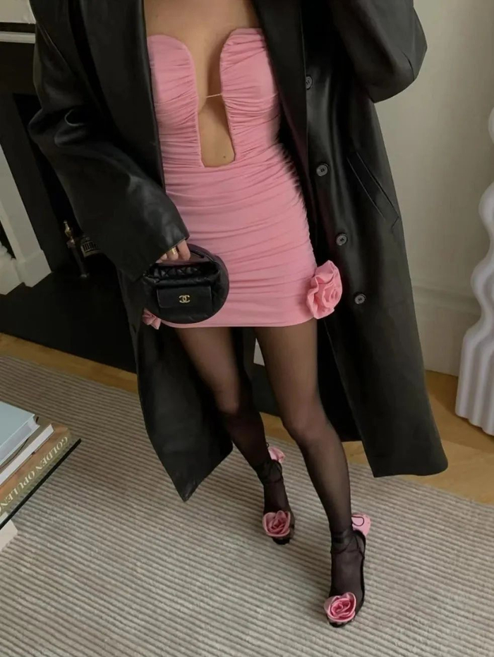 Leonie这两条连衣裙的示范,直接点题了!——粉色也可以是松弛又具有张力的颜色。