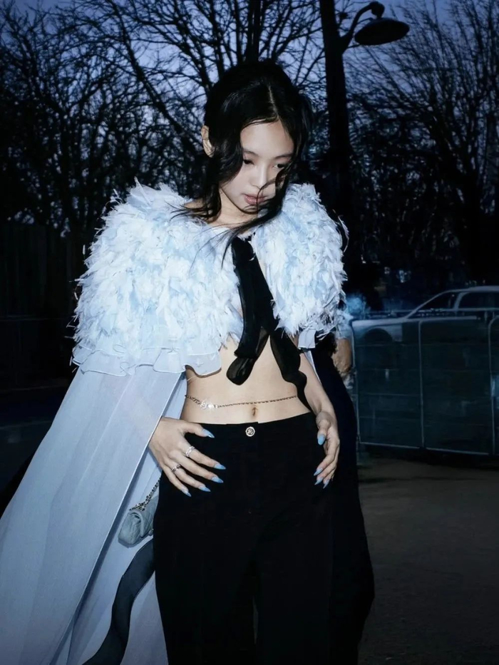之前海报也写过的——穿着baby blue蓝纱裙去看香奈儿秀的Jennie、穿着华伦天奴定制缎面粉色礼服的赞姐....大场合”镇场“的再也不是那些黑色或者金属色了。